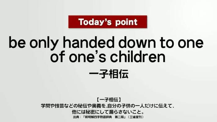 Point: be only handed down to one of one’s children = 一子相伝