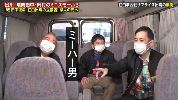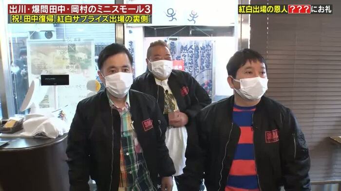 その道中の話題は、『紅白歌合戦』の裏話。岡村いわく「田中さんが一番どっしり構えていた」といい、「珍しく出川さんが『おい、岡村隆史。合わせておこうか』って何回も…(笑)」と、ソワソワする出川の練習に何度も付き合わされたそう。
