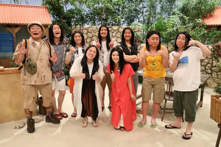 7人が初集結した新作コント「冒険家オカベ」。岡部演じる冒険家オカベは、嵐に遭遇し、見知らぬ島に漂着した。長田、松尾、粗品、せいや、秋山、菊田、丸山礼、そして今回がコント初挑戦の生見愛瑠演じる島民たちに出会う。親切にしてくれる島民たちだが、会話に違和感を覚えるオカベ。“名もなき島”の奇妙さにツッコんだり振り回されたりしながらもオカベと島民たちの交流が始まる。