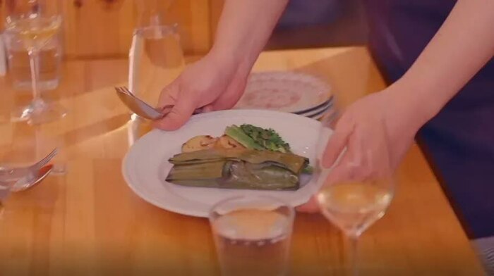 瀬島さん:サワラのバナナ葉包み焼きです。