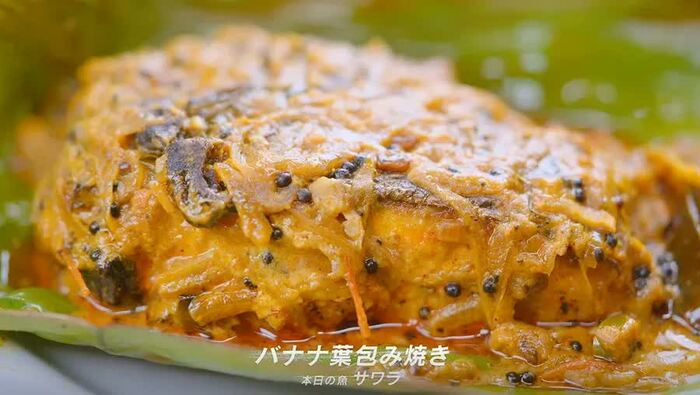 瀬島さん:インドのケララ州を象徴するような料理の一つです。ケララとかスリランカで使う、魚に酸味を付けるフィッシュタマリンドというスパイスで焼いた魚をバナナの葉で一緒に包んで焼き上げるお料理です。