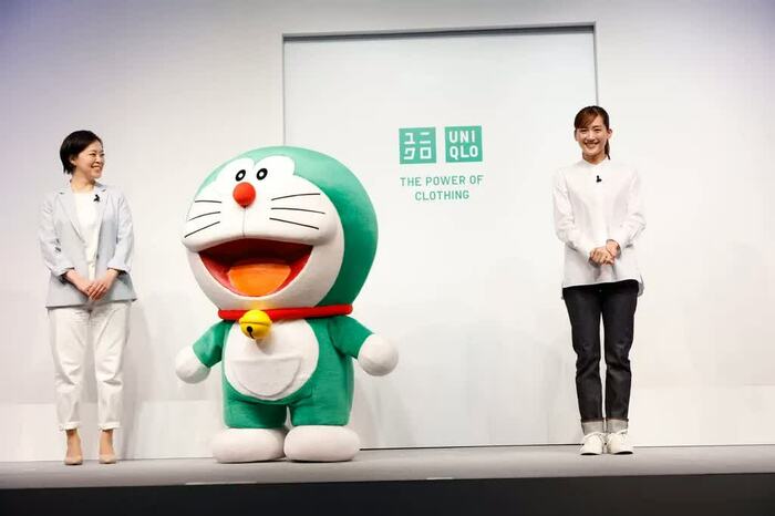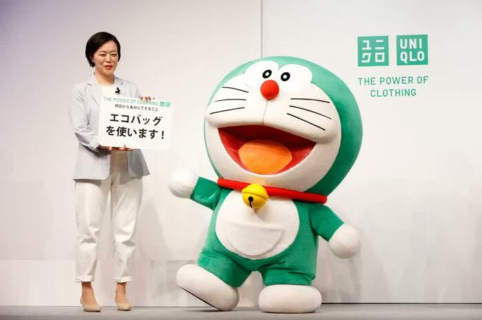 サステナビリティアンバサダーとして発表されたのは、ユニクロの新ロゴの色に合わせた緑色のドラえもん。