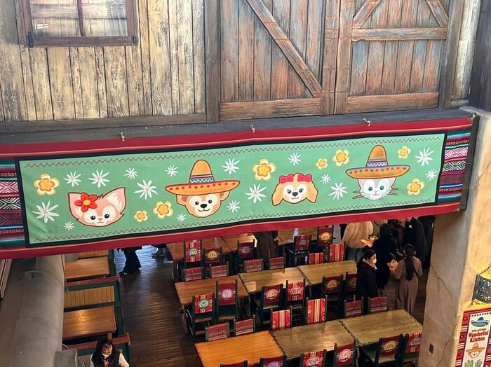 天井にはメキシカンなダッフィーたちが描かれたタペストリーの装飾など、華やかな雰囲気が広がっていますよ。