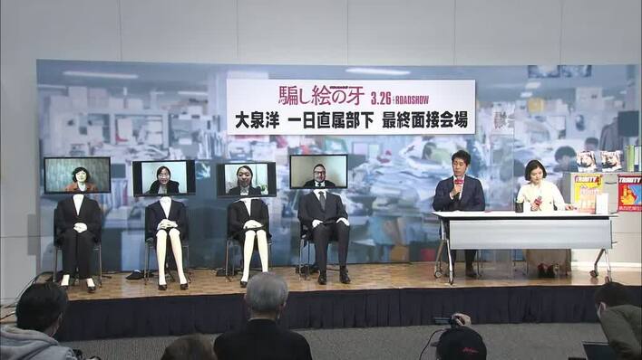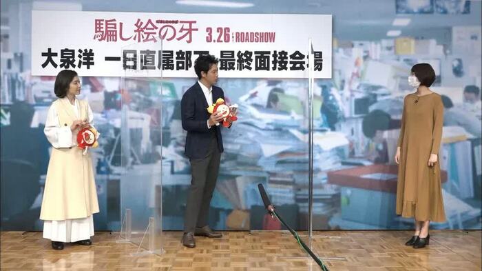 大泉洋が主演を務める映画「騙し絵の牙」(3月26日公開)の「大泉洋の1日直属部下選考・オンライン面接イベント」が3月18日(木)に行われ、松岡茉優と共に出席した。