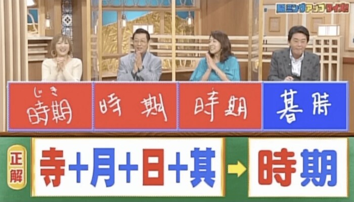 【おめざめ脳トレ】漢字を足すと出来上がる二字熟語は何でしょう?【『クイズ!脳ベルSHOW』より】
