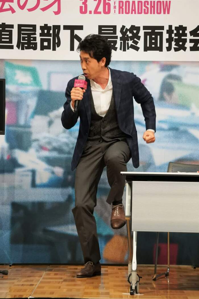 最後、大泉は面接の参加者に丁寧にお礼を伝えたのち「今日は面接官としましては、30点という点数をいただきましたけど、映画の中に出て来る速水という男は100点満点の男。さまざまな苦難をいろんなアイディアで周りの人を騙しながらも結果を出していく大変かっこいい上司になっております。今日の面接官・大泉とは違う、編集長・速水をご覧になっていただければと思います」とメッセージを送った。