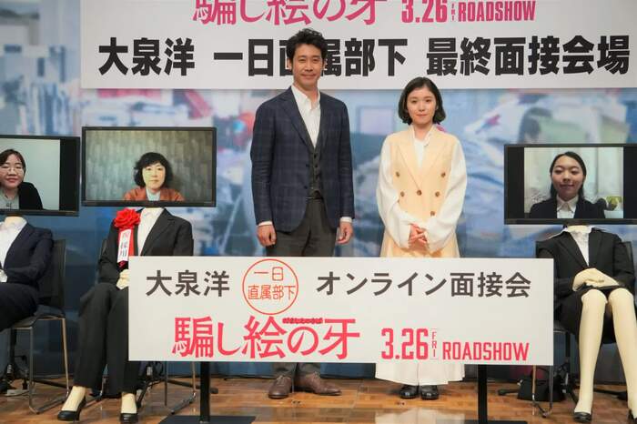 3月18日(木)、映画「騙し絵の牙」の公開直前イベントが行われ、大泉洋、松岡茉優が出席した。