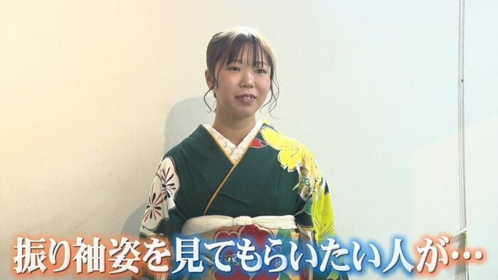 華やかな花などが描かれたこの振り袖姿を、見てもらいたい人がいるといいます。