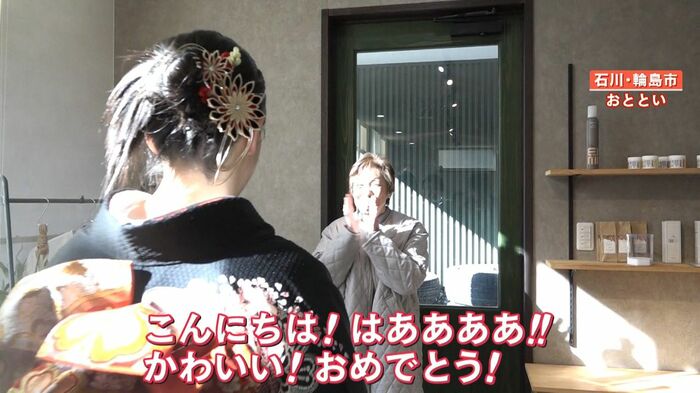 振り袖を着た愛子さんを満面の笑みで迎え入れてくれたのは、祖母の百合子さん。そんな百合子さんを見て、愛子さんは感極まり涙を拭います。