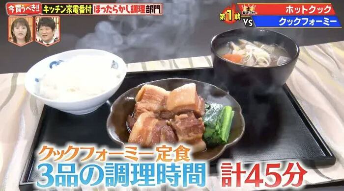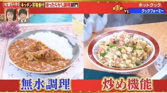 そしてジャッジタイム。「(角煮などの)この定食、毎日作る!」というフワちゃんは「クックフォーミー」に投票したが、ギャル曽根と小倉は「ヘルシオホットクック」をセレクト。「ヘルシオ ホットクック」が、次の戦いへ進んだ。
