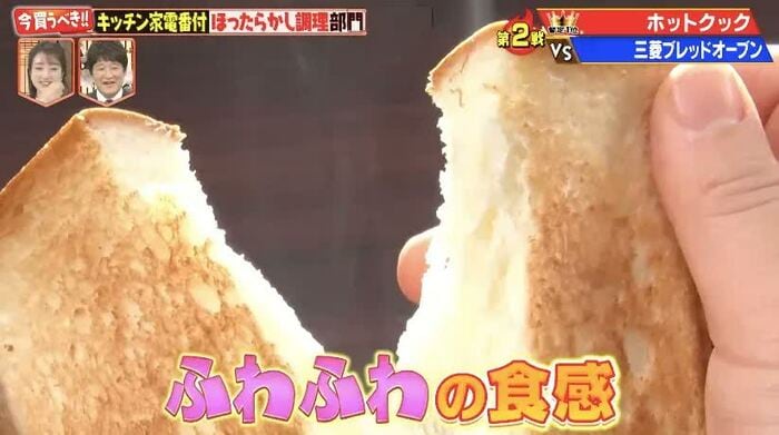 最終決戦の評価は、ギャル曽根とフワちゃんが悩んだ末に「三菱ブレッドオーブン」に、小倉が「ホームベーカリー」に投票。「キッチン家電番付 ほったらかし調理部門」は、「三菱ブレッドオーブン」が頂点に輝いた。