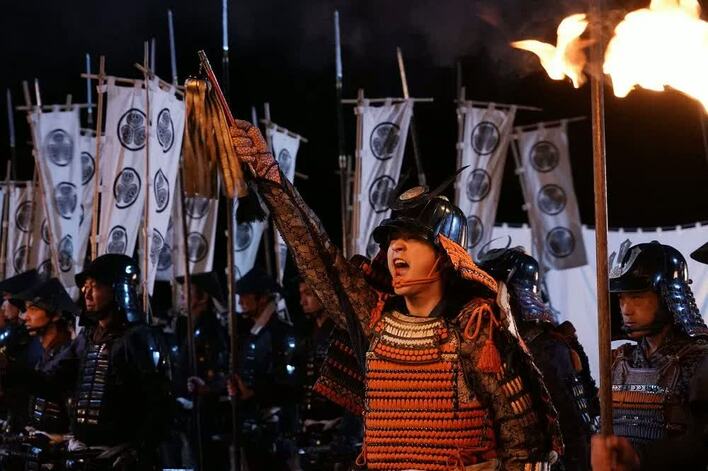 鎧(よろい)は着るだけでズッシリ来るし、背筋を伸ばした状態でずっといなければいけない。歩き方も変えないと動けないし、これを着て戦うなんて…と思ったのですが、以前、映画でもご一緒した持道具の上田耕治さんが、鎧を着けながら一つ一つのアイテムの意味を教えてくださったんです。それを聞いていたら、戦に挑む人たちにとっては、これこそが命を守るための道具だったことが理解できました。
