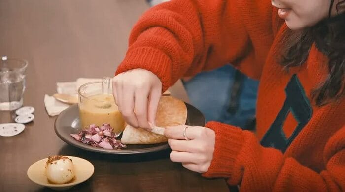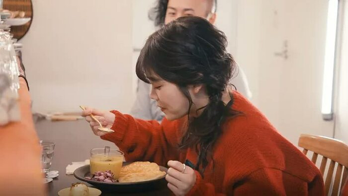 チッチ:ポタージュだからこそ、パンケーキにしっかり染みます。とろとろしてるので、どっぷり食べられる感じが最高です。朝のメニューですけど、私このために早起きできるって思いました。めちゃくちゃおいしい。こんなパンケーキが食べられるなんて、いいなー。結婚してほしいです。