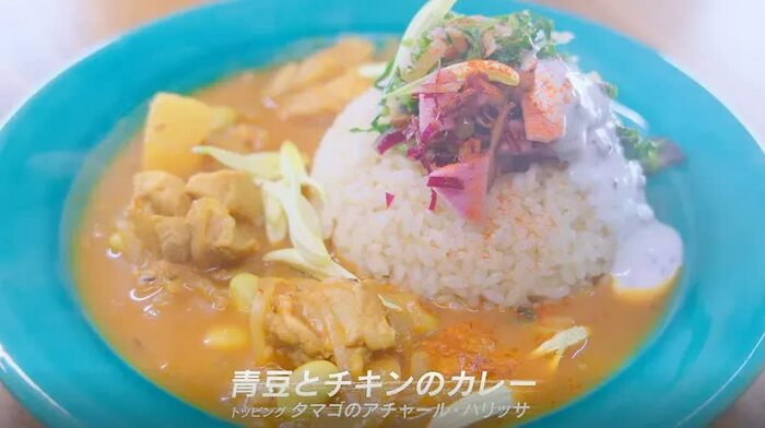 由希奈さん:青森県産の無農薬で作られた枝豆を使っています。枝豆のゆで汁を旨みとして加えているカレーです。特徴としては、タマリンドという酸味のある果実のピューレを入れて、すっぱさを出しています。
