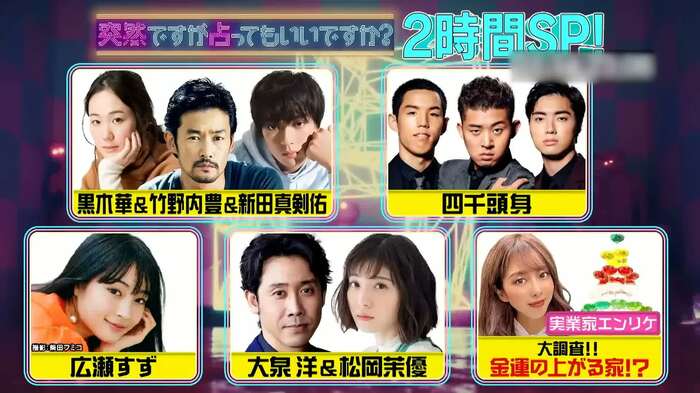 そのほか、『突然ですが占ってもいいですか?SP』で紹介された大泉洋・松岡茉優への占いの全貌や、ゲスト(広瀬すず、竹野内豊・黒木華・新田真剣佑、大泉洋・松岡茉優、四千頭身)の半生や性格が占われた様子は、TVerおよびFODにて見逃し配信中(最新話は期間限定で無料)だ。