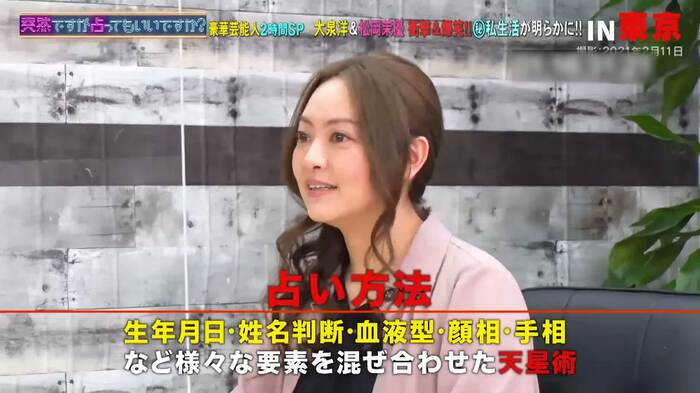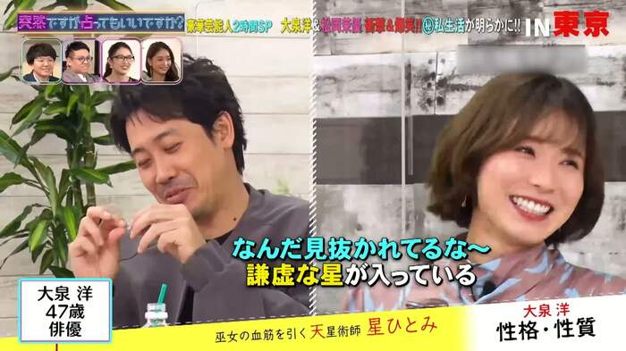 3月10日(水)、フジテレビでは『突然ですが占ってもいいですか?SP』が放送され、大泉洋・松岡茉優が星ひとみによって占われた。