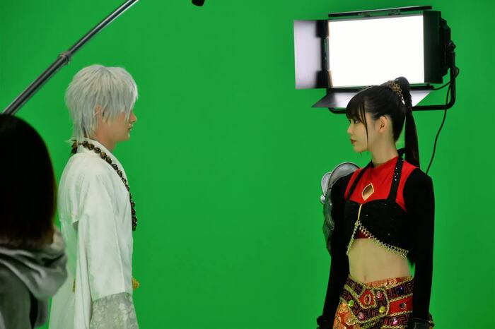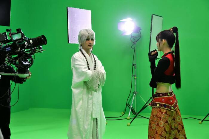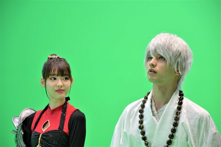 モニター側ではスタッフがCGを重ねた状態の映像を見ていて、身体の向きや位置などの細かい指示が出されることも。その都度、微調整をしながら撮影をしていくため、現実世界の撮影より1シーンを作るまでに時間がかかる。中村と瀬戸は何度も同じ場面を繰り返さなくてはいけないこともあったが、毎回、集中力を途切れさせることなく演じきっていた。