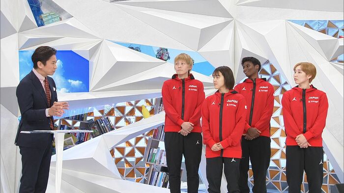 パリオリンピックの切符を手にして2月13日、日本に帰国した、バスケ女子日本代表の髙田真希選手、馬瓜エブリン選手、宮崎早織選手、山本麻衣選手が「めざまし8」のスタジオに出演。
