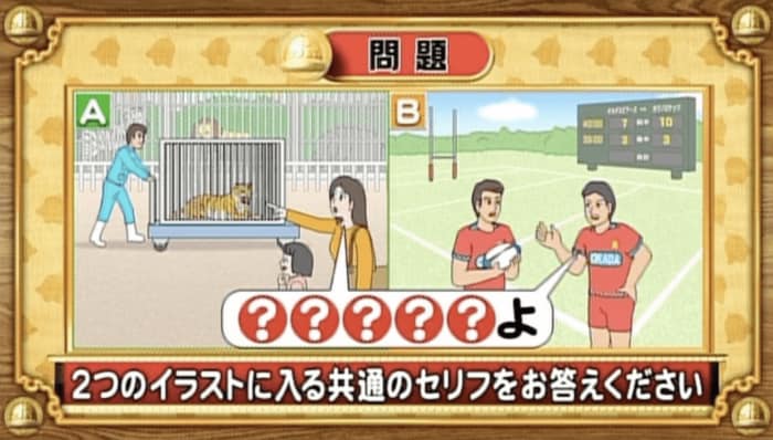 「?????よ」。2つのイラストに入る共通のセリフを答えてください。