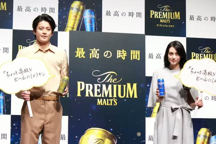 3月4日(木)、サントリービール(株)による「ザ・プレミアム・モルツ新CM発表会」が行われ、ゲストとしてCMに出演する小栗旬、柴咲コウが登壇した。