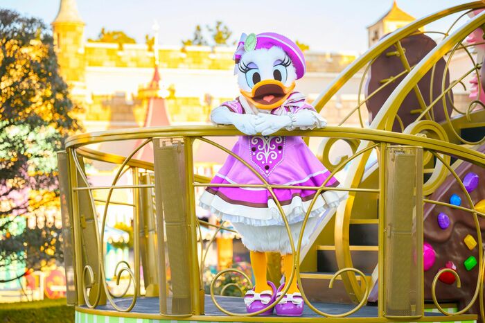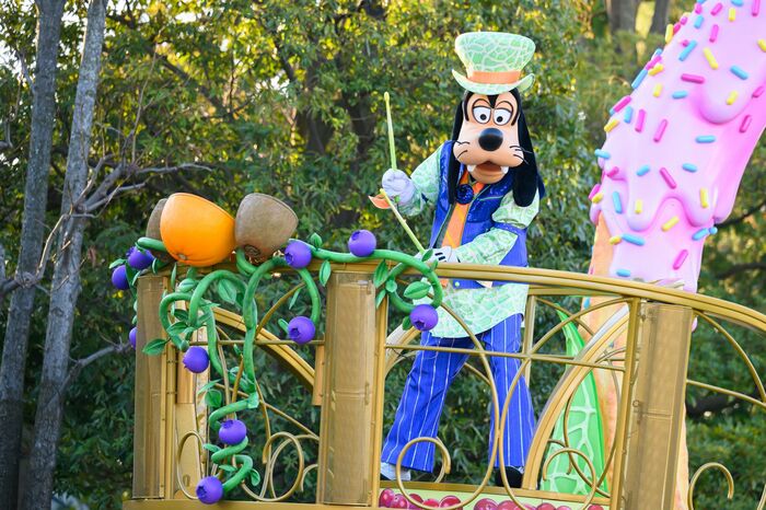 さらに今回、パレードが停止すると、ミッキーたちの掛け声とともに、ゲストと一緒に踊って盛り上がる場面も。手で、グミや、チョコ、ドーナツを表現したダンスを踊ったり、スティックを振ってみたりと、楽しくパレードを堪能できます!