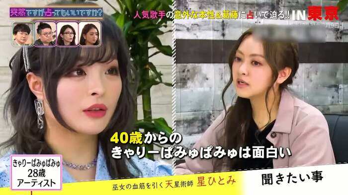 星との対面も終盤にさしかかり、きゃりーが今後の運勢について聞くと、星は「40歳からのきゃりーぱみゅぱみゅは面白いんです」とズバリ。
