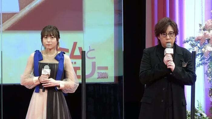3月3日(水)映画「トムとジェリー」プレミアムイベントが行われ、ゲストに霜降り明星(せいや、粗品)と飯豊まりえ、声優の水瀬いのり、日野聡が登壇した。