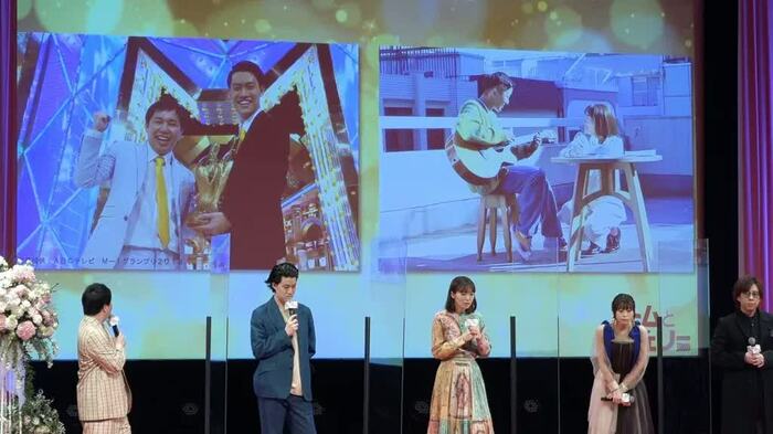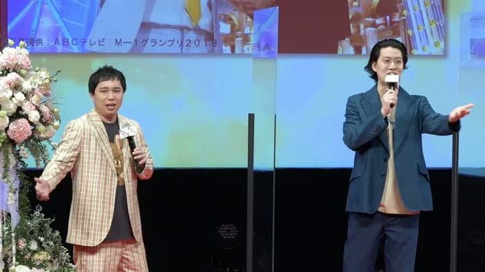 さらに「当日も粗品が泣いちゃうんで。ステージに上がる際に『せいや、ちょっと俺、無理かも』って言い出して、(足を震えさせて)こんな状態になってたんで」と振り返った。そのエピソードについて、粗品は「俺、泣かへんで。堂々としてたっちゅうねん」と否定。