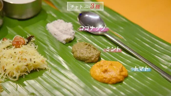 ボス:チャトニ3種で、ココナッツ、ミント、トマト。