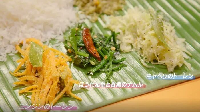 ボス:ニンジンのトーレン、ほうれん草と春菊のナムル、キャベツのトーレン。