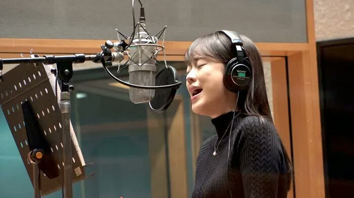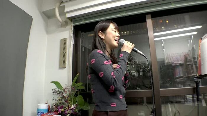 仕事の合間にボイストレーナーのレッスンを受ける彼女。最近では、歌番組などで他の歌手の歌を披露することも多い。