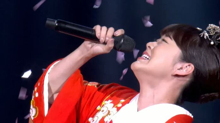 この日、最終的に選んだ衣装は、2階席のファンにも見えやすい華やかな柄の着物だった。