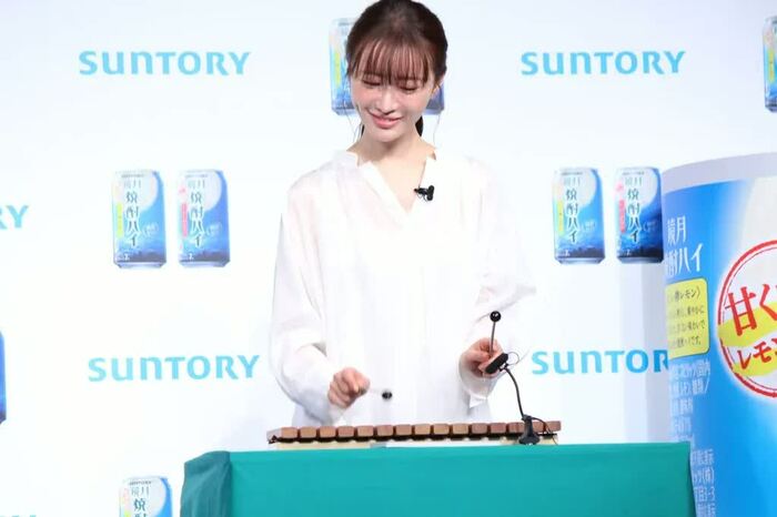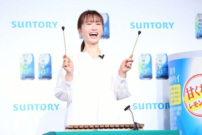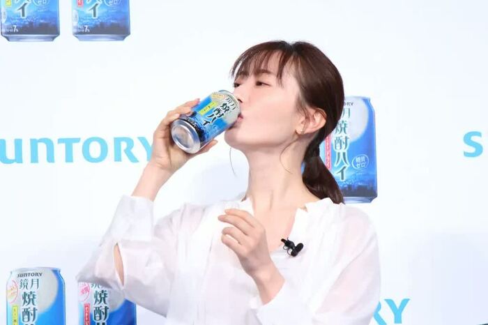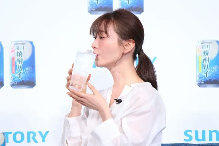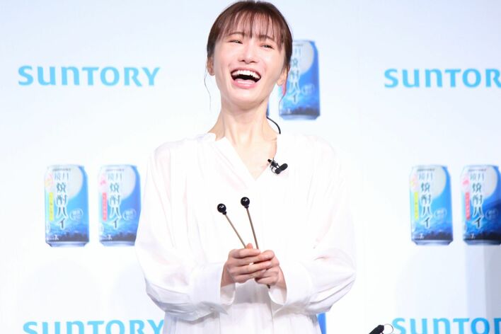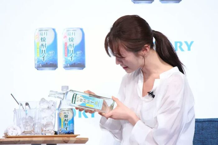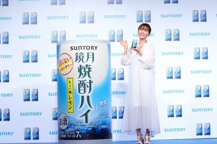 松本まりかがイメージキャラクターに起用されたサントリースピリッツ株式会社の「鏡月焼酎ハイ」に関する発表会が3月1日(月)に行われた。
