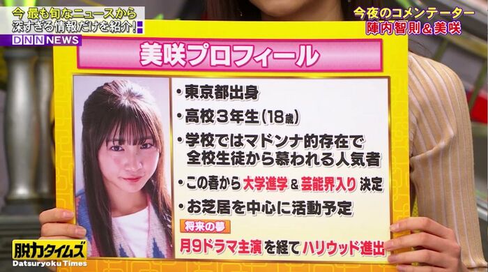 番組冒頭、ゲストコメンテーターの席に座っていたのは、大竹さんではなく、これから芸能界デビューするという“将来の大女優”美咲さん。