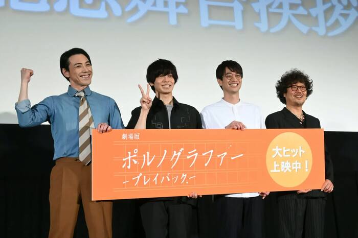 2月27日(土)、映画「劇場版ポルノグラファー~プレイバック~」上映記念舞台挨拶が行われ、竹財輝之助、猪塚健太、吉田宗洋、三木康一郎監督が出席した。
