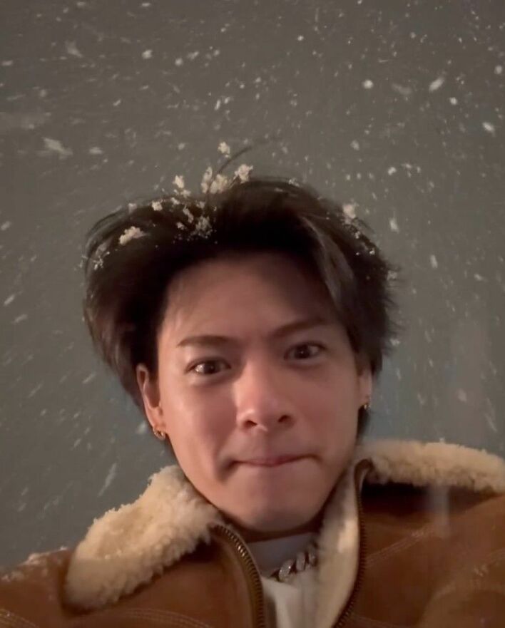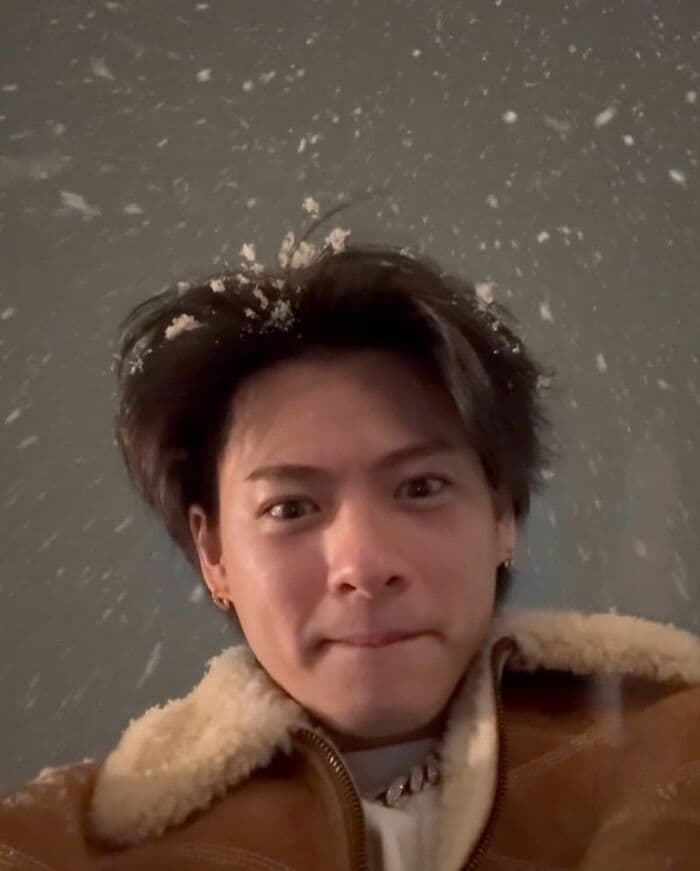 雪が降る中で無邪気に遊んでいるショットを公開しました。