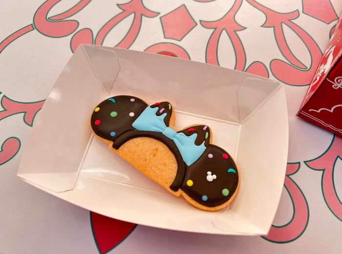 ミニーのカチューシャをイメージしたアイシングクッキーが再登場します。水色などの色合いがとってもかわいらしく、耳をよく見ると…。