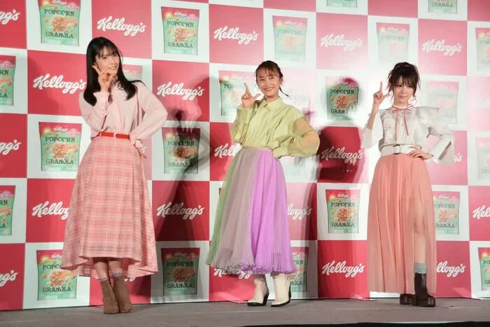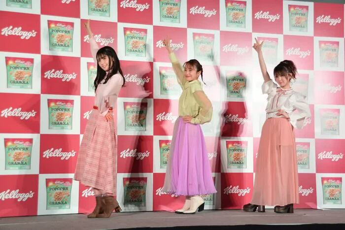 2月25日(木)、ケロッグの新製品「ポップコーン グラノラ」のウェブCM発表会が行われ、モーニング娘。OGの高橋愛、道重さゆみ、田中れいなが登壇した。