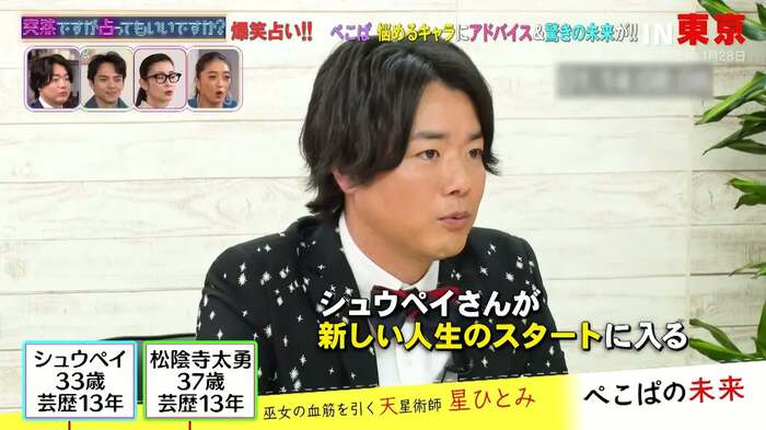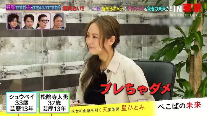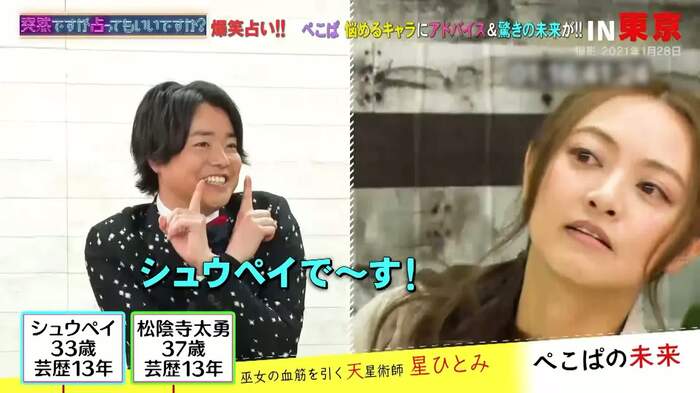 2月24日(水)、フジテレビでは『突然ですが占ってもいいですか?』が放送され、ぺこぱが星ひとみによって占われた。