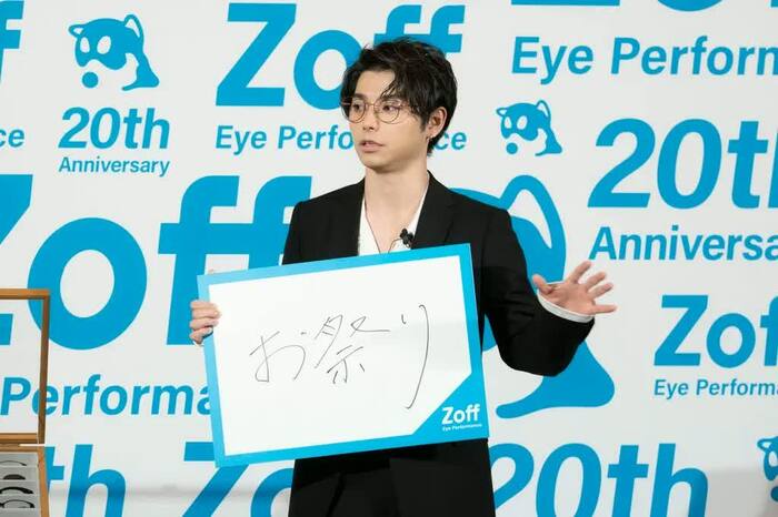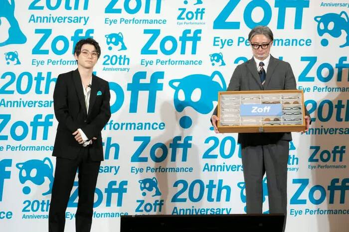 イベントでは、Zoffの20周年を記念して村上に20本のメガネがプレゼントされる場面も。