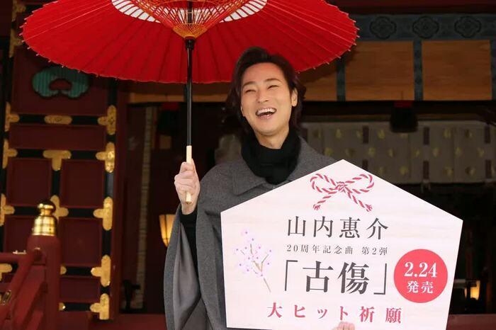 演歌歌手・山内惠介の新曲「古傷」発売記念ヒット祈願イベントが2月22日(月)に行われた。