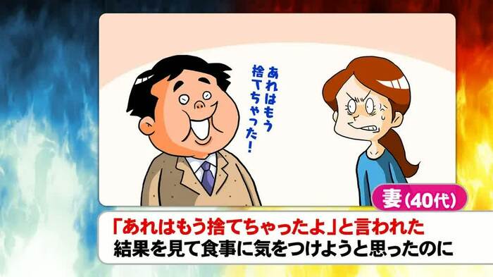 「夫が健康診断の結果を勝手に捨てていた」という40代女性のお怒りエピソードでは、「夫の健康を心配しているからこそ、診断結果を見て食生活などを注意したい」という女性陣と、「妻に小言を言われるのがイヤだから、捨てる気持ちはわかる」という男性陣が真正面から対立。