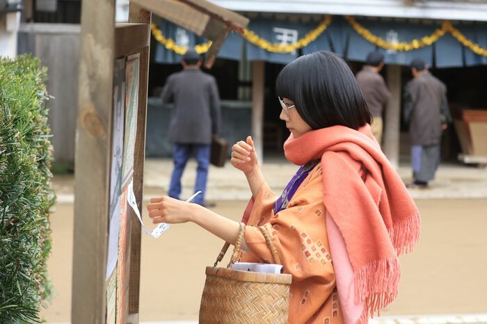 掲示板にビラを貼っていると、書店から嘉助(黒川想矢)を追って、利市(橋本淳)が飛び出してきた。利市から嘉助を捕まえる手助けを頼まれた鹿乃子は応じる。
