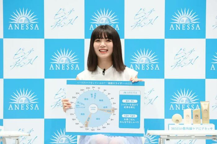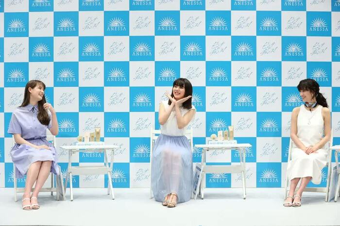 続いて3人の、“日常のUVケア”トークセッションに。シャワーの後に、スキンケアとUVケアをしているという池田は「スキンケア感覚で塗っている。忘れっぽい性格なので、普段から目につくところに置いて、塗るようにしています」とルーティーンを紹介。