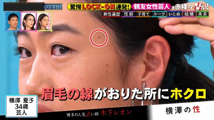 横澤さんの左眉の脇にはホクロがありますが、これは「色情ボクロ」と言い“床上手のサイン”だそう。