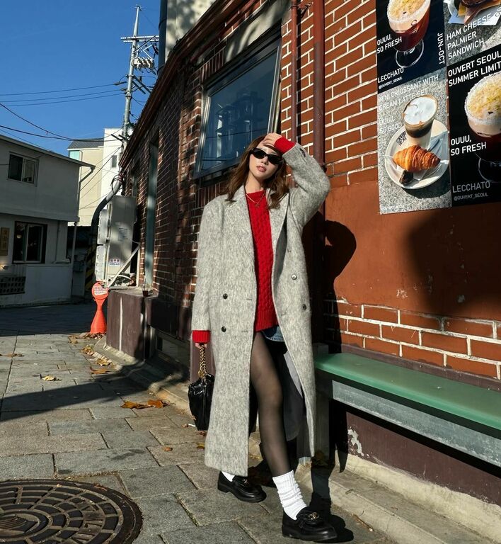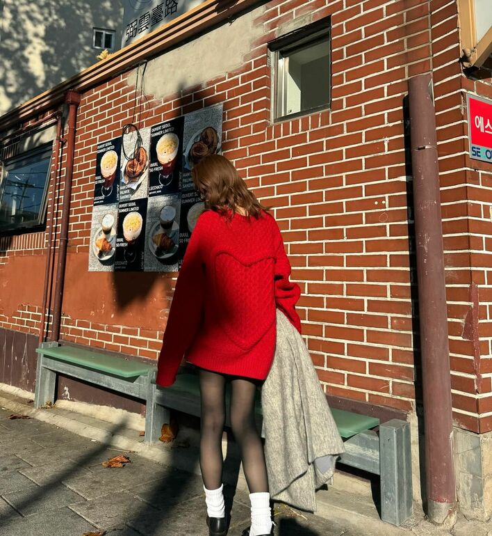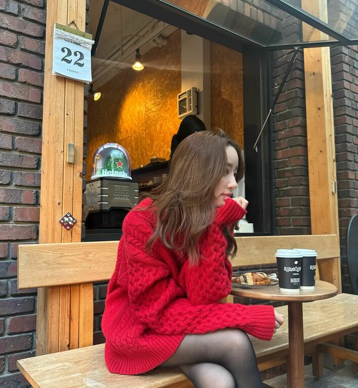 中町綾 ミニ丈ボトムスで美脚披露!赤ハートニットコーデに「大人っぽすぎ!」「足細すぎ!」と絶賛の声