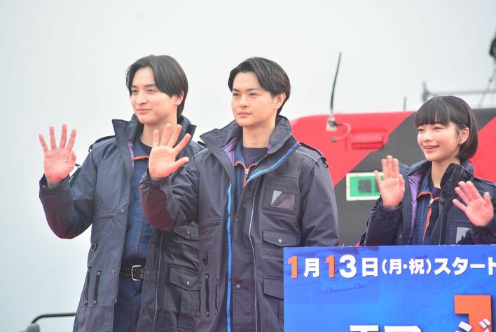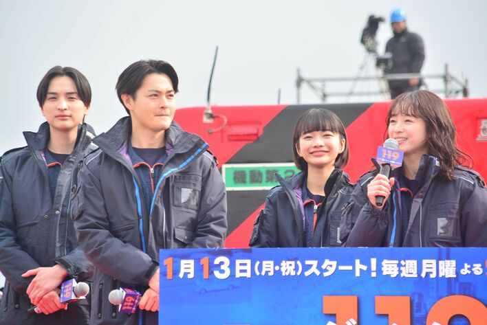 清野菜名が消防車に乗って登場!瀬戸康史、見上愛らと赤レンガ倉庫の出初式で『119エマージェンシーコール』をアピール!