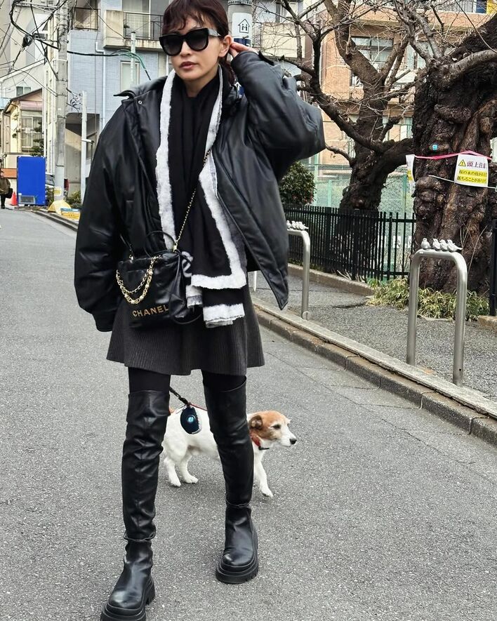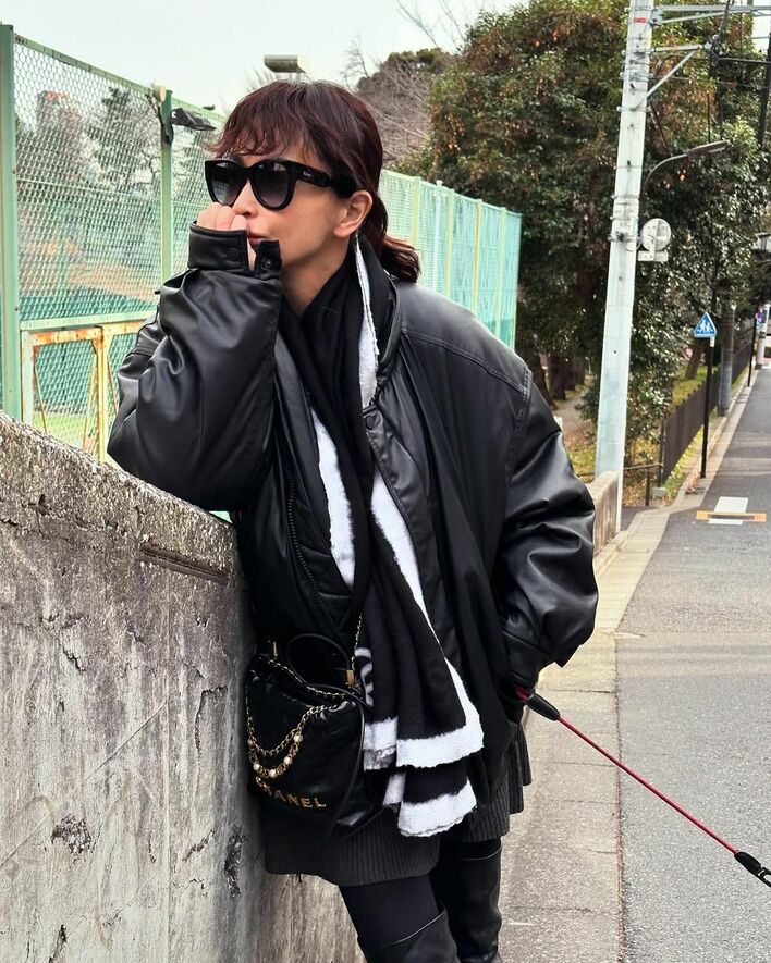 “オーラ”全開!長谷川京子 全身ブラックコーデ×ブランドバッグで愛犬とお散歩する姿に 「美のカリスマ」「素敵すぎ」と反響