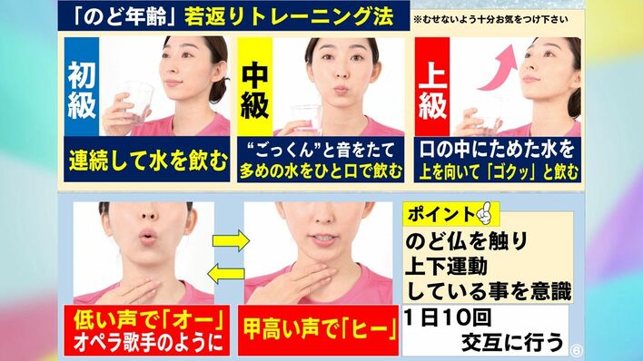 【注意】「のど年齢」老化で命が危険に…若返り方法とは?“飲み込む力”を鍛えるトレーニング方法を専門家が解説!