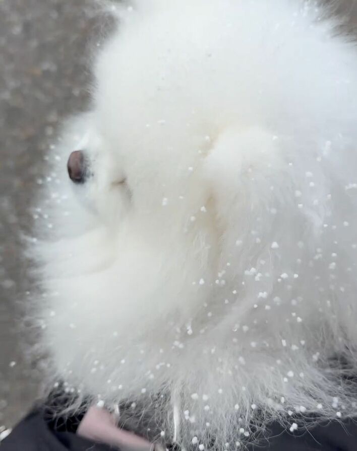「雪がパールみたいだわ」輝きを放つポメラニアンが話題!妖精のような姿に「可愛さが引き立ってる」【激かわアニマル奇跡の瞬間】
